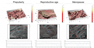 To provide the first description of these structural features, ovarian tissues from prepubertal, reproductive-age and menopausal patients were analyzed by scanning electron microscopy (SEM) at different magnifications to capture: fibril (nanoscale), fiber (microscale) and fiber-bundle (mesoscale) organization and diameters, as well as pore number and area, as a reflection of ECM network tightness. Based on a stereoscopic reconstruction of SEM captures created by tilting the sample by + 5° along the X-axis and generating 3D renderings using SMILE VIEW™ Map software based on MountainsSEM®, the team was able to extract surface topography and measure microroughness on the same tissue regions used to characterize ECM architecture.